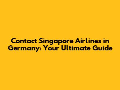 Contact Singapore Airlines In Germany: Your Ultimate Guide