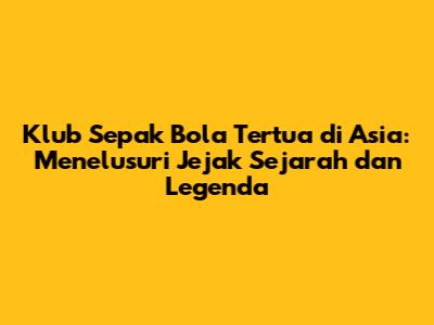 Klub Sepak Bola Tertua Di Asia: Sejarah Dan Legenda