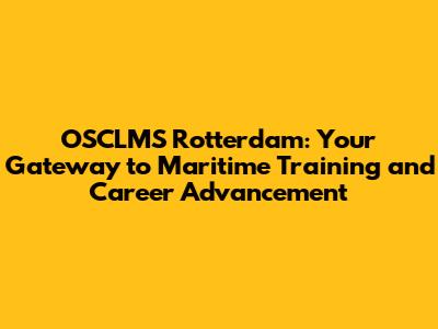 OSCLMS Rotterdam: Your Maritime Career Starts Here