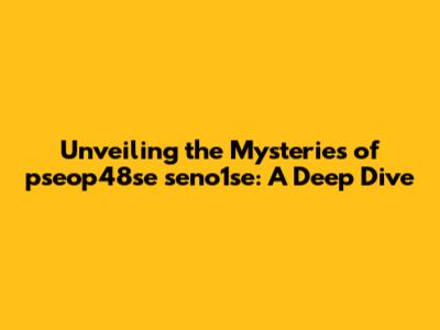 Unveiling The Mysteries Of Pseop48se Seno1se: A Deep Dive